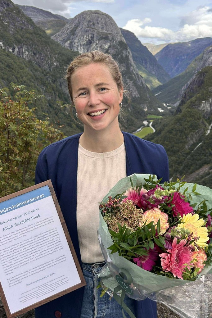 Anja Bakken Riise vert tildelt Skjervheimprisen 2025 for si tydelege deltaking i det offentlege ordskiftet. Som miljøaktivist og mangeårig leiar av Framtiden i våre hender har ho stadig understreka at omfanget av klimaendringar og naturtap er ei krise som gjeld alle, og som difor må møtast med kollektive tiltak.